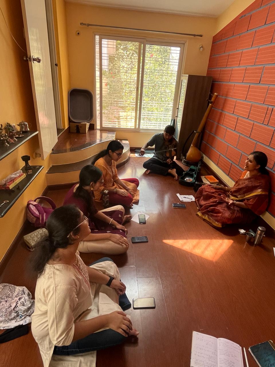 Expands on kritis, voice culture, and raga bhavam. Students start working on deeper technical aspects of music.
