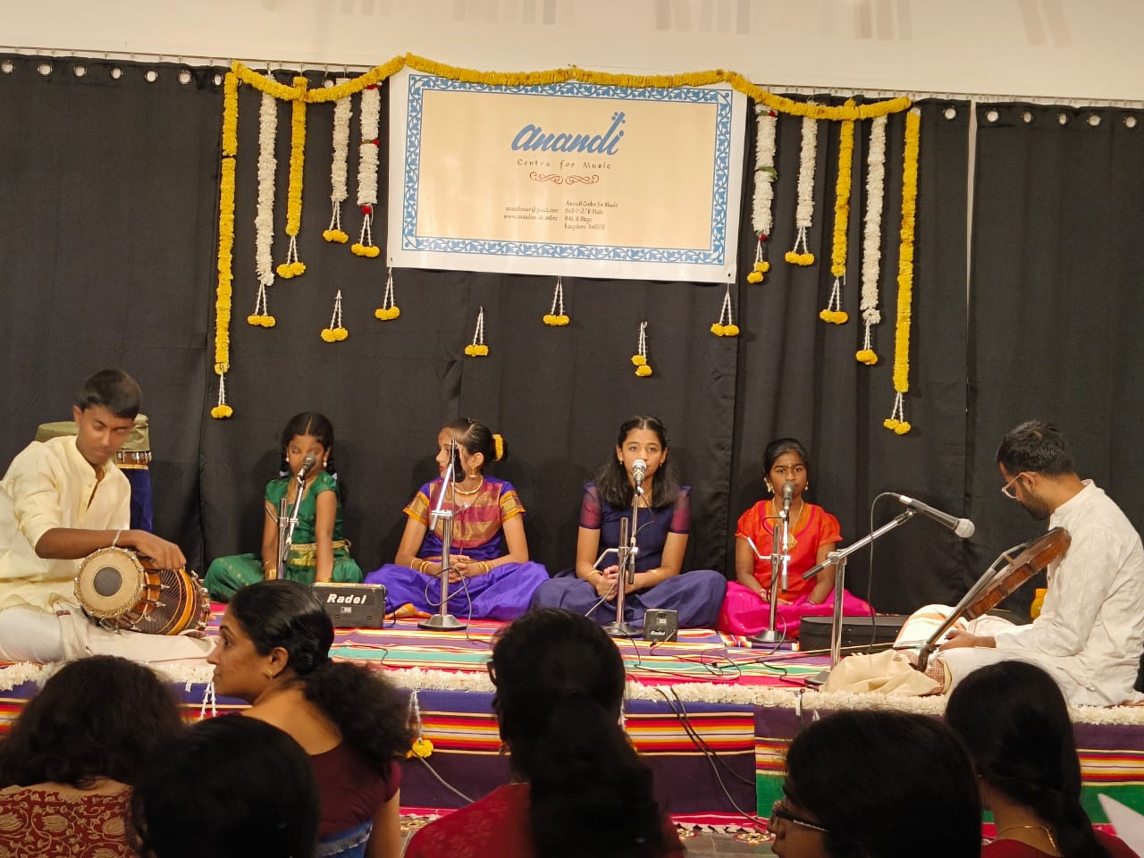 We registered formally with the government of Karnataka in 2011. We actively encourage and guide students who wish to appear for the certificate music exams conducted annually by the Karnataka Secondary Education Examination Board (KSEEB). Apart from this, individual students who wish to appear in various competitions are given separate guidance. Anandi’s students have shone on various platforms – as rank holders in the junior and senior exams, as top prize winners in reputed sabhas like ‘Gayana Samaj’ (Bangalore), ‘Rasika Ranjani Sabha’ (Trichy) and as selected artistes at ‘Indian Raga’, to name a few.